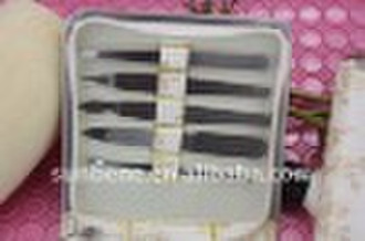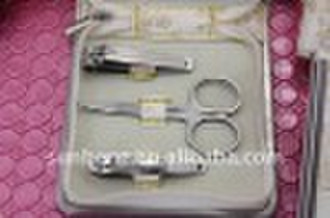 Manicure Set Item No.: M807, 1. Nail Clipper ,Cuticle scissor,A Scissor,Tweezer.Cuticle pusher,Nail file,Nail trimmer. 2. PVC apple box,box dimension:12.6*13.3*2.5 cm 3. Standard package:white box Color box / gift box could be optional. 4. The tools could be changed. 5. OEM is welcome More details,pls contact us! Welcome!!